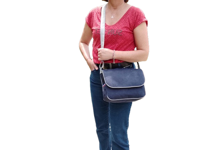 Sac Besace Marine et Bord Argenté