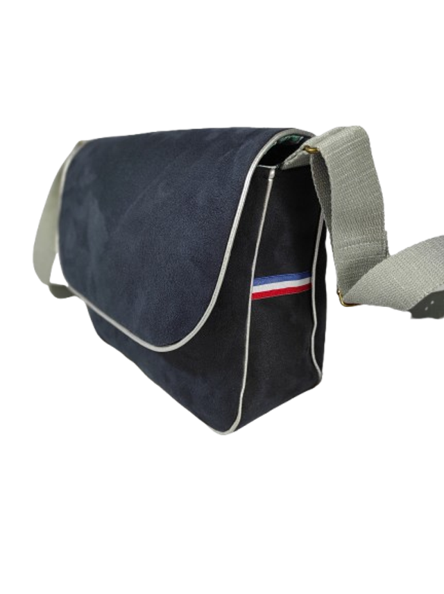 Extérieur : Un joli sac besace en simili cuir suédine marine.
